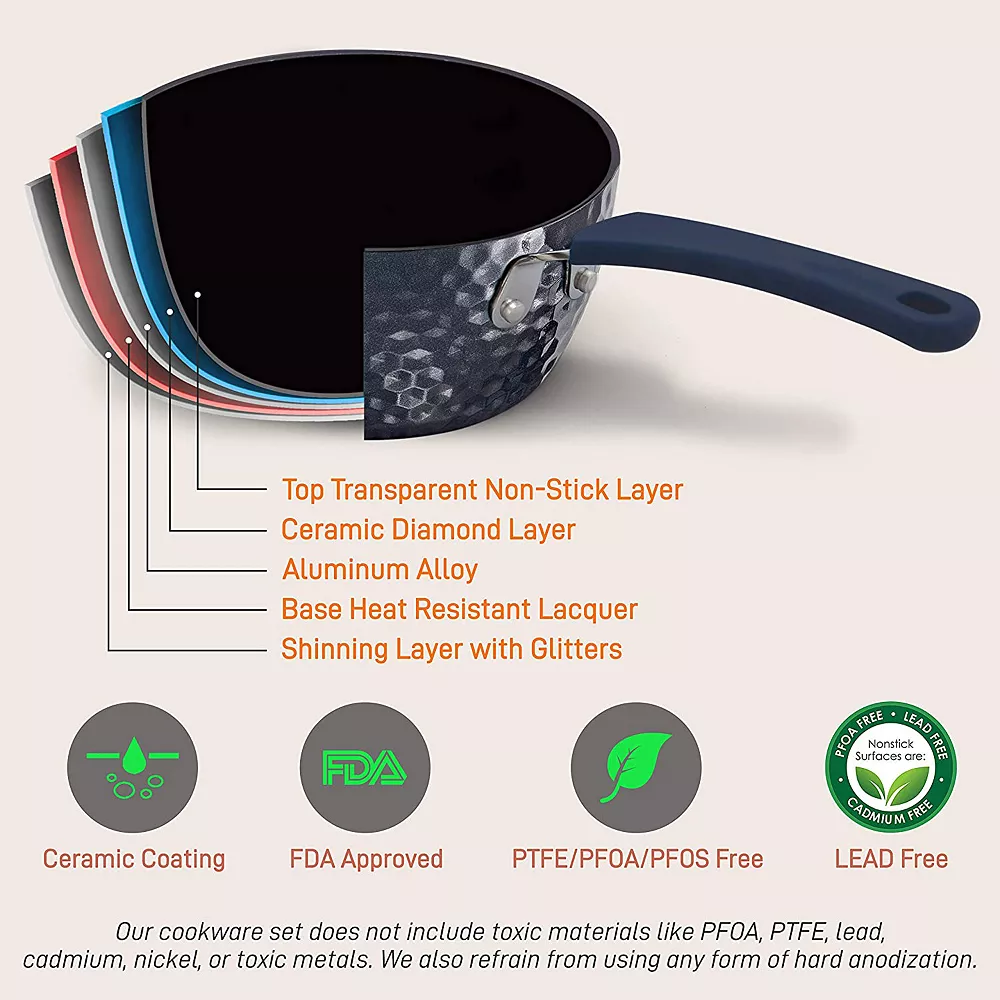 - 11-piece non-stick kitchenware set features stylish modern cookware design elegant diamond pattern to elevate any kitchen