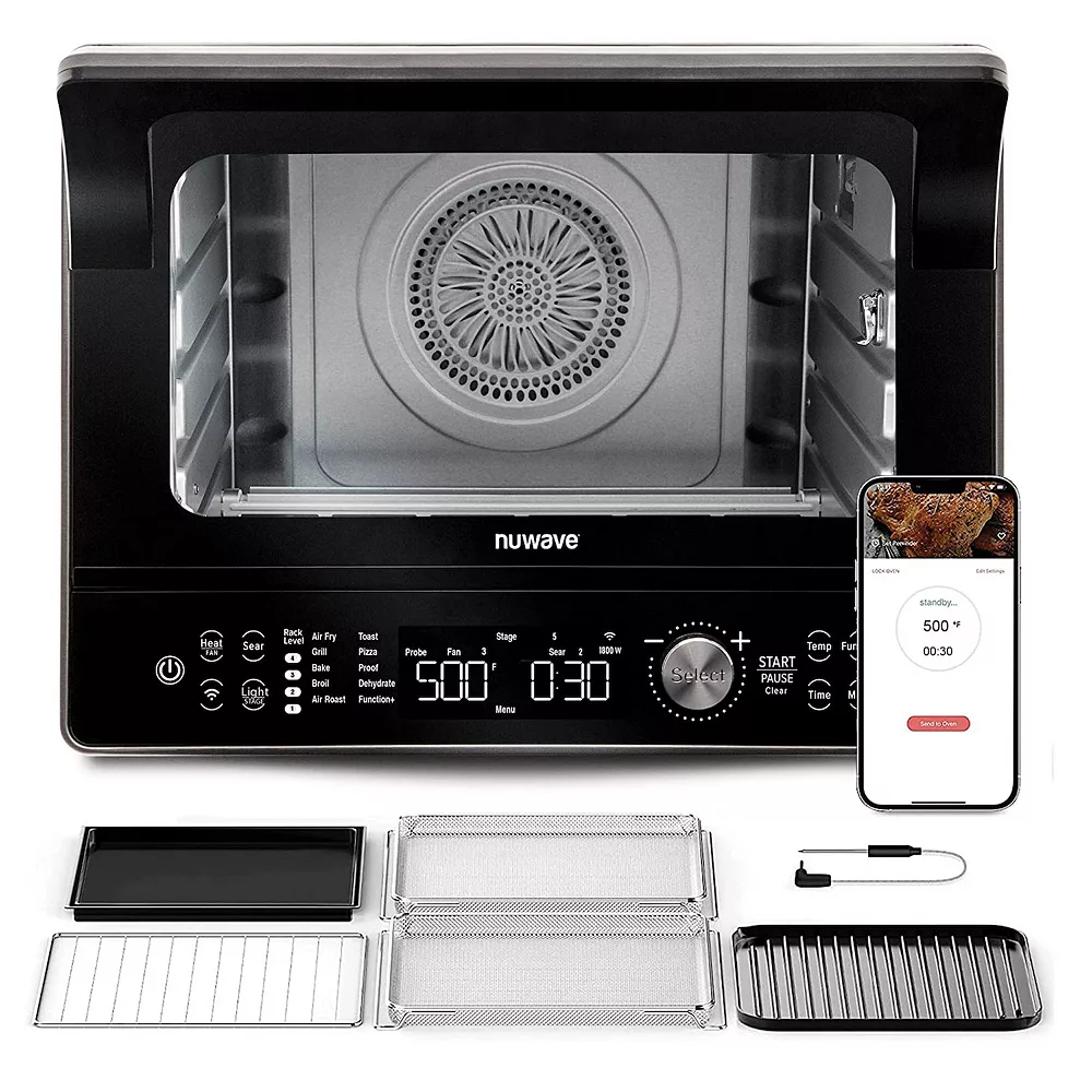 The NuWave Pro Smart Oven Air Fryer Grill with 3-Zone digital cooking technology lets you air fry, grill, bake, roast, broil, toast, pizza, dehydrate and proof all in one unit.
