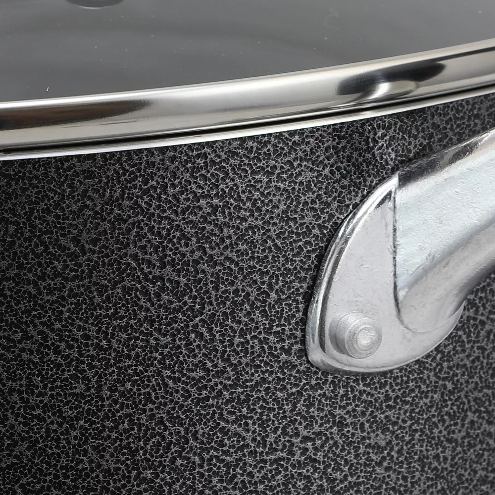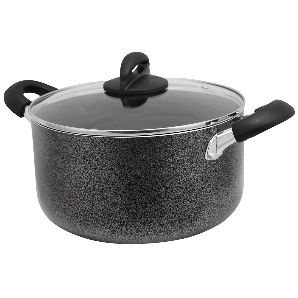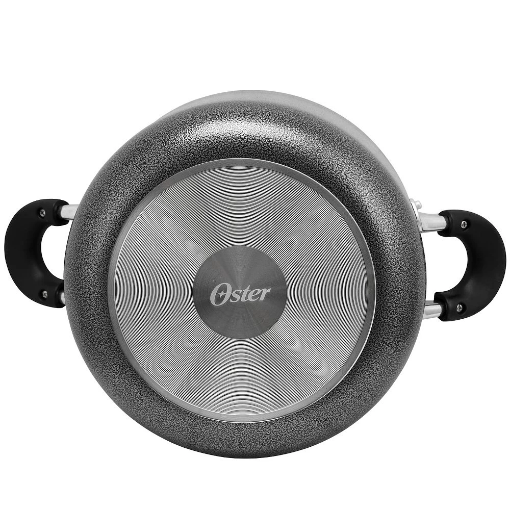 The Oster Cocina Clairborne 6 Quart Aluminum Hammered Tone Dutch Oven with Lid will create a sleek and dynamic look for your kitchen. This beautiful and long-lasting kitchen tool will allow you to cook and bake wonderful meals for family or guests, making it ideal for many dinner gatherings and events to come. Its nonstick interior makes cooking and cleaning easy while also allowing you to make healthier dishes and skip using any oils or fats. Never let heat escape from your culinary creations again with the help of the matching vented glass lid allowing for easy meal monitoring. The Clairborne will add a touch of elegance to your everyday meal prep routine.