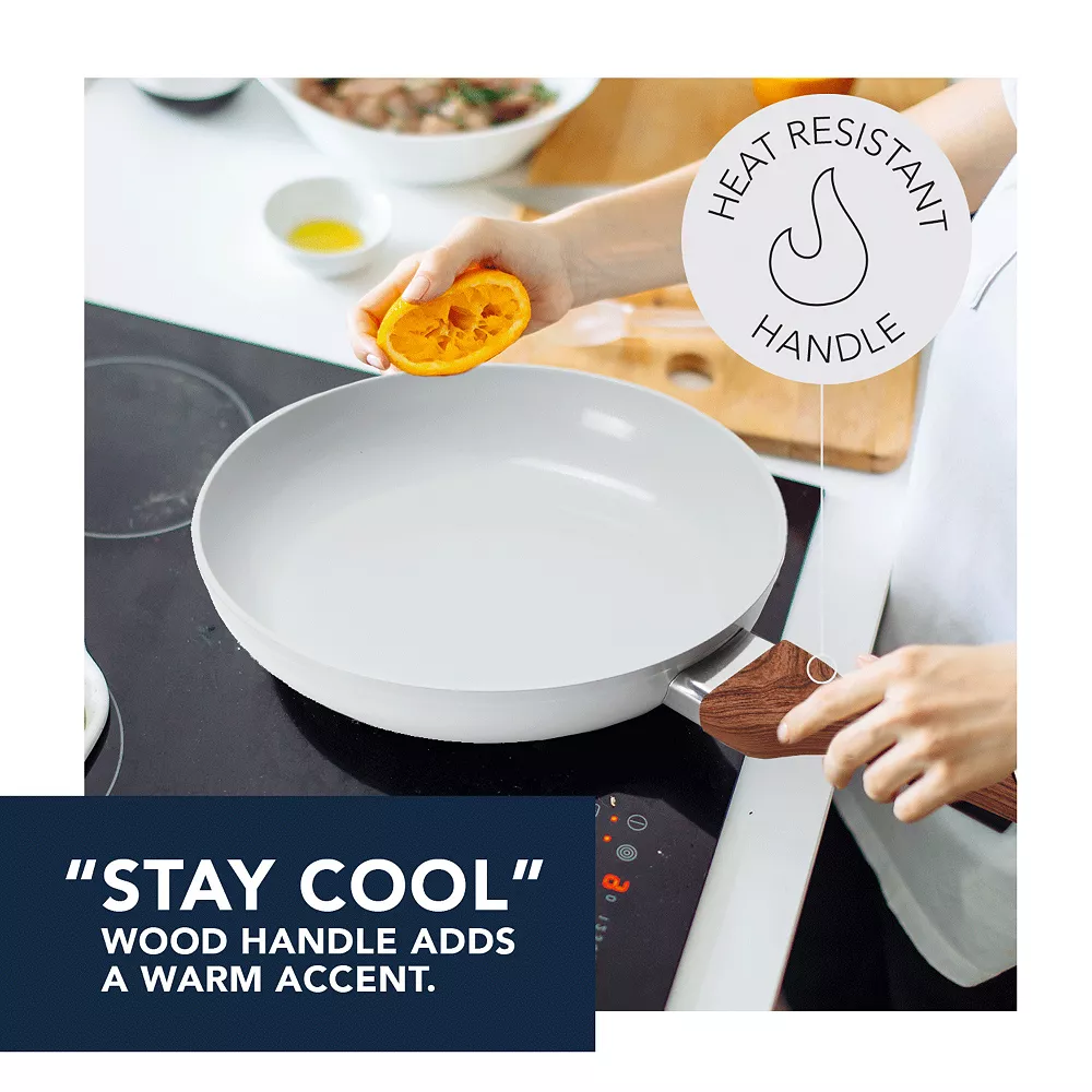 Whip up something special with this sturdy, durable and stylish frypan from the Grove Collection. An essential and versatile piece for any home chef! Crafted from eco-friendly and durable materials, this frypan can be used for extended periods of cook time. Fry meat, bacon, eggs, omelets and more! This frypan features a non-stick ceramic coating, so you can forget the frustration of food sticking to the pan. It’s even safe to pop it in the dishwasher for a fuss free clean up. Available in a wide range of colors, mix and match it with more pieces from the ultra-modern Grove collection to complete the look.