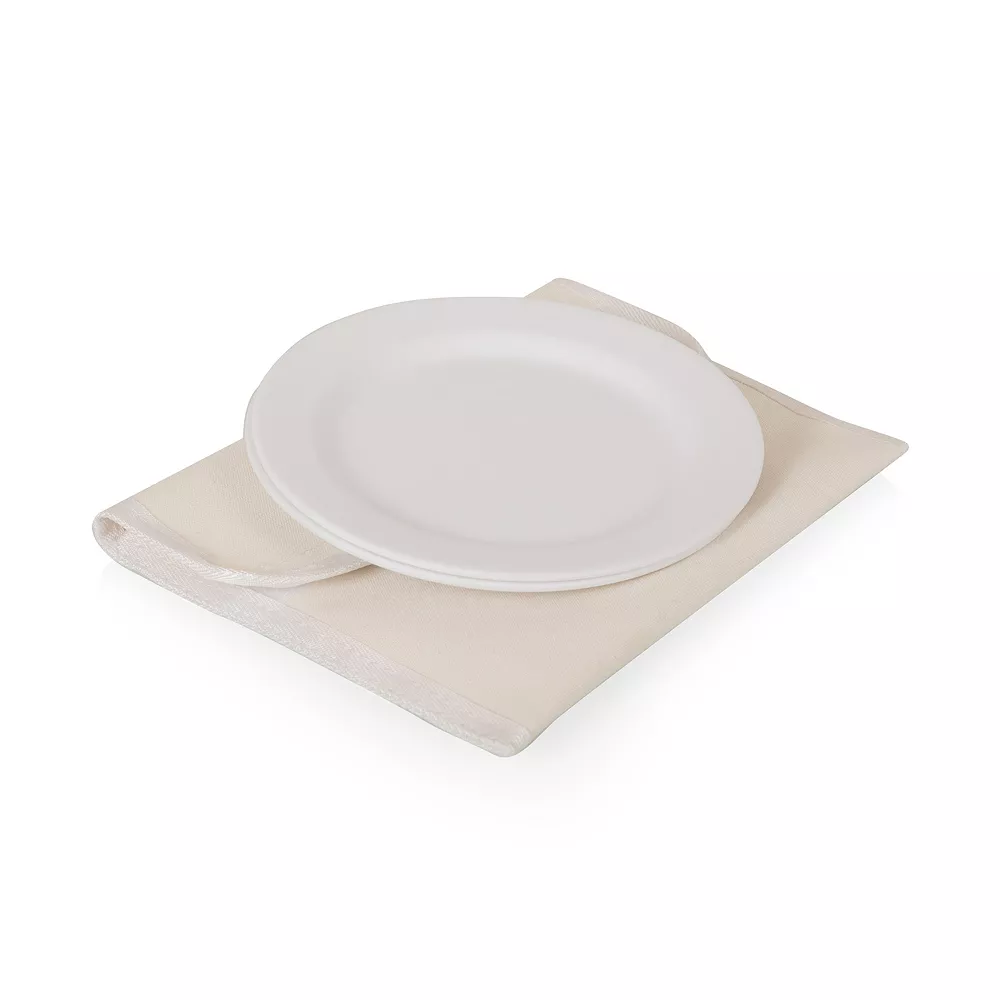 - Canvas pouches store plates and flatware sets