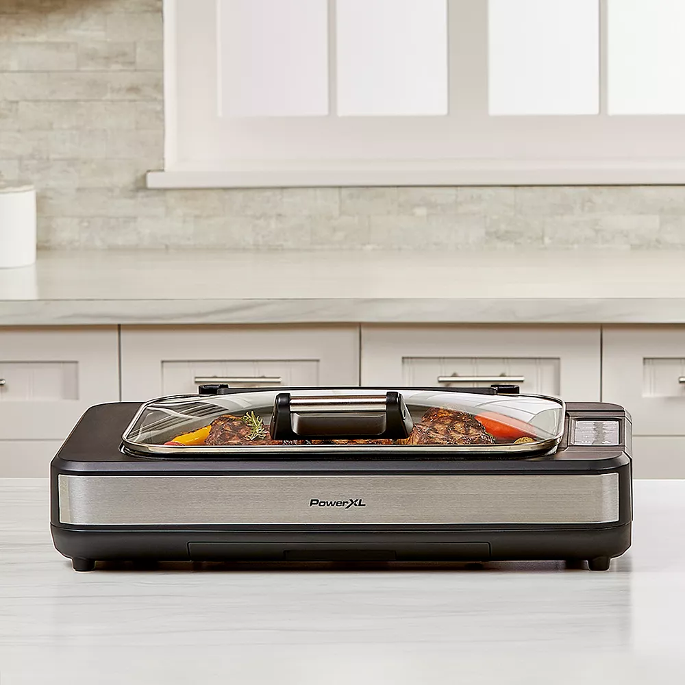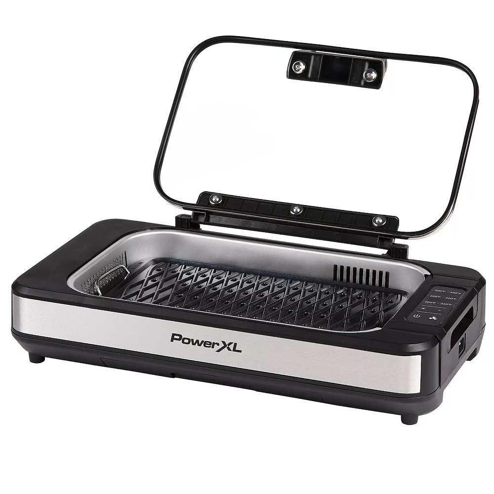Grill smarter, better, faster and virtually smokeless with the PowerXL Smokeless Grill Elite brings outdoor grilled taste and flavor indoors on a premium, die-cast aluminum grill plate with a nonstick coating for easy, healthy grilling with less oil.