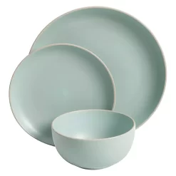 Gibson Rockaway 12 Piece Stoneware Dinnerware Set, Plates & Bowls, Matte Teal