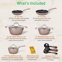 NutriChef 11 Piece Nonstick Diamond Pattern Kitchen Cookware Set, Allura Bronze