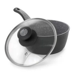 Oster Cocina 1.7 Quart Non Stick Saucepan With Glass Lid In Grey