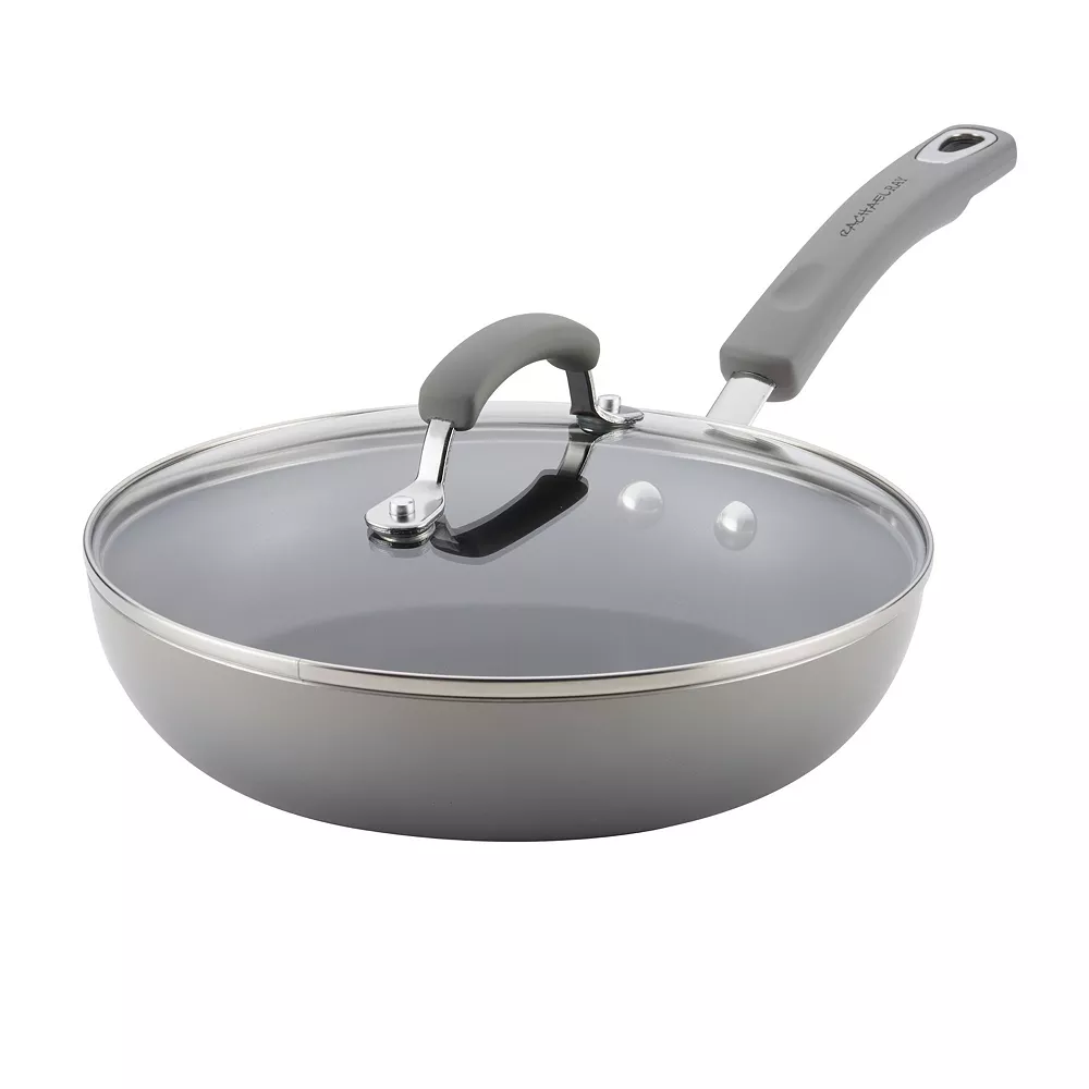 One-Pan wonder meals are in easy everyday reach with the Rachael Ray Classic Brights Hard Enamel Nonstick 9.5-Inch Covered Deep Skillet.