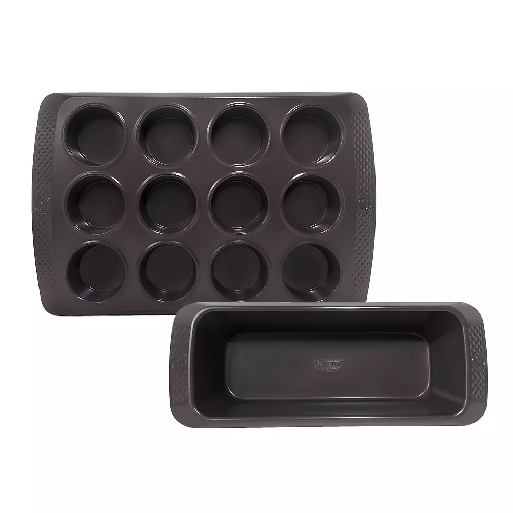 The perfect pair of multi-purpose pans for baking breakfast treats, dinners and desserts. The loaf pan is ideal for baking pound cake, meatloaf and homemade bread. Indulge in cupcakes and muffins, or get creative with mini frittatas and deep dish pizzas with the 12-cup muffin pan.