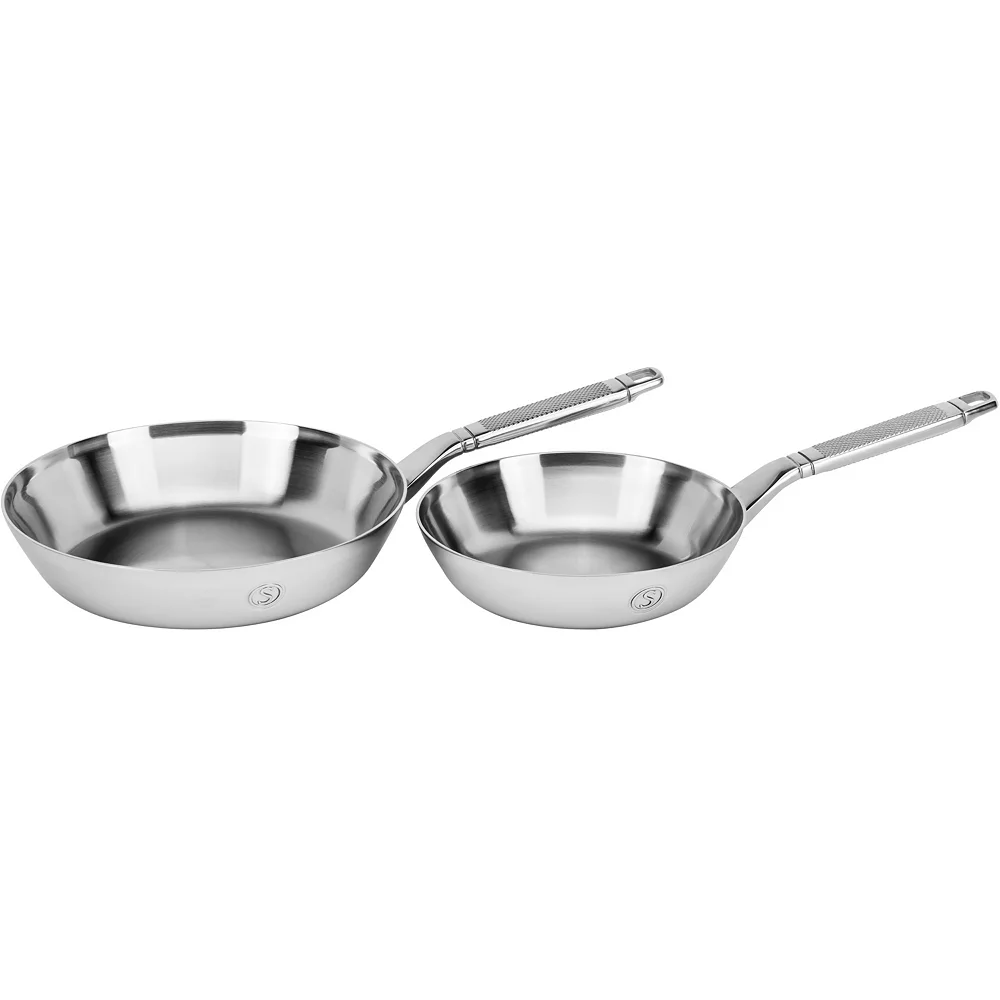 Expect professional performance when cooking with this Saveur Selects Voyage tri-ply frypan set.