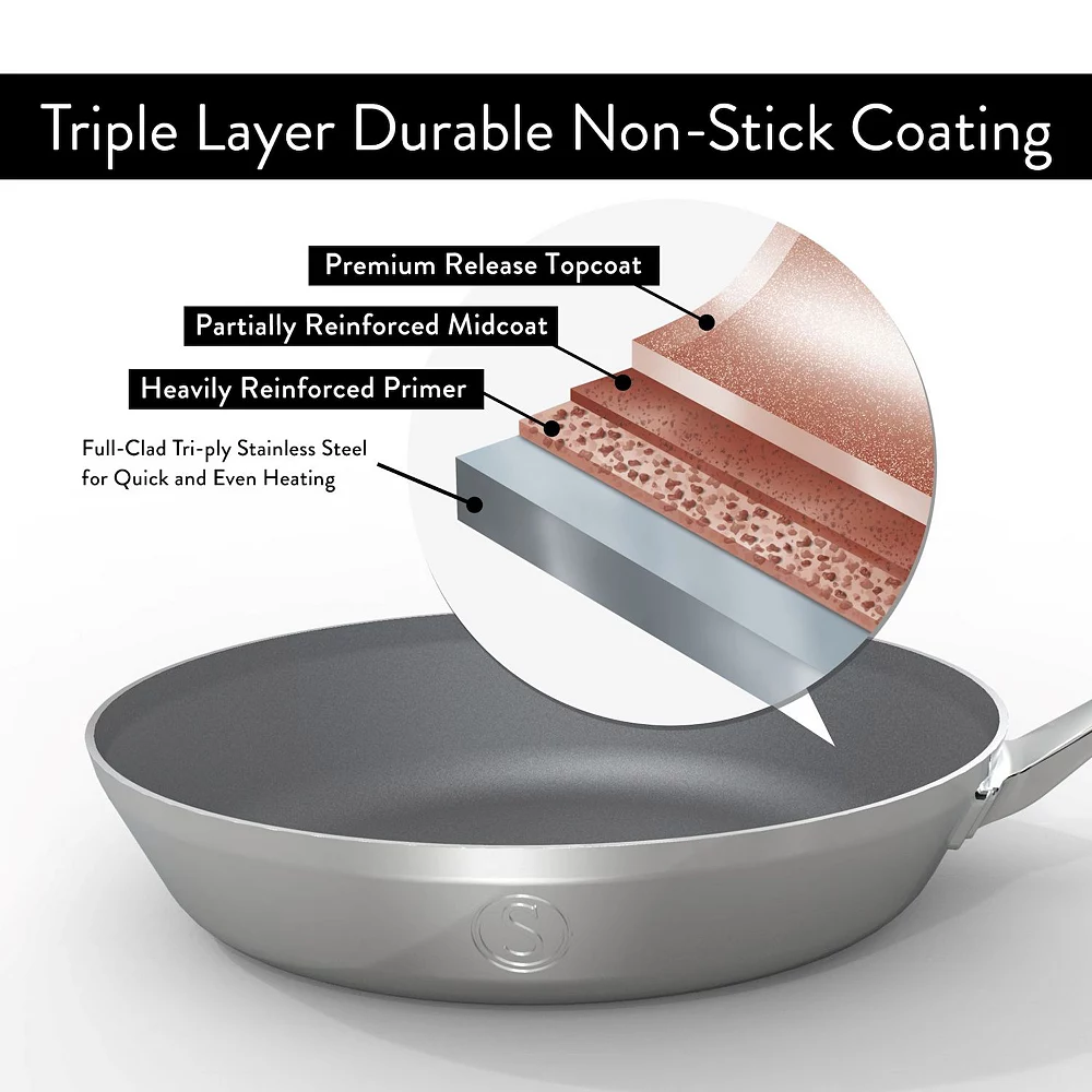 With an ultra-smooth nonstick surface, the Saveur Selects Voyage Tri-ply Nonstick Frypan promises outstanding, efficient performance with every meal cooked.