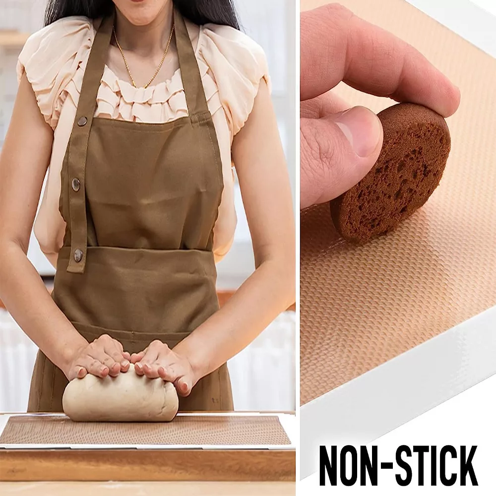 These 2pcs of flexible food grade silicone non-stick baking mats are half-sized made for a 13 inch x 18 inch pan. Perfect alternative for other baking materials such as parchment paper, aluminum foil, and non-stick sprays. Features a nonstick surface that allows for effortless food removal with no plastic aftertaste, and does an amazing job at baking evenly without burning.