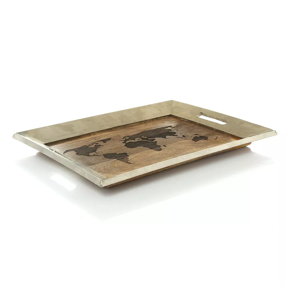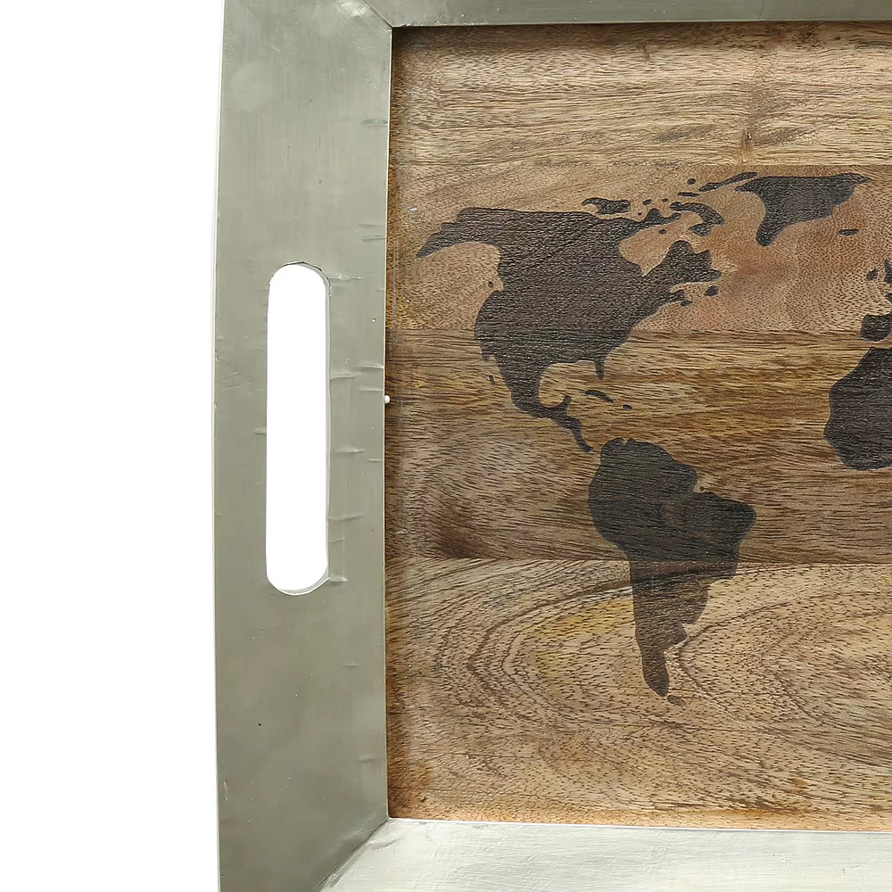 - Elegant etched map design with antiqued silver foil-wrapped border