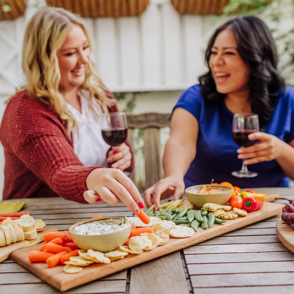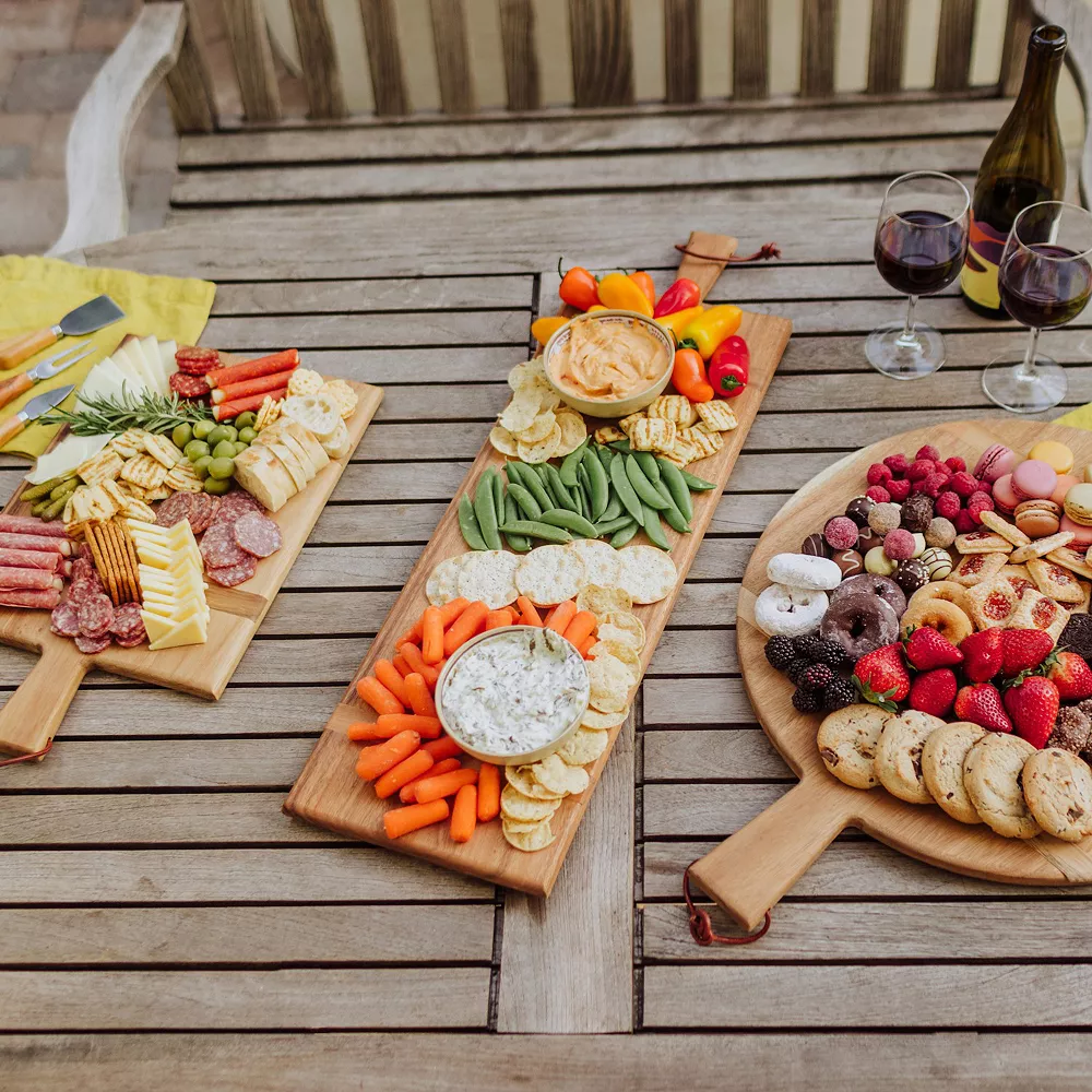 The Madera Rectangle Charcuterie Board is a Caribbean walnut wood serving tray fit for the finest tables. Cheese, charcuterie, appetizers, and more are displayed to perfection on this large and long rectangular wooden cutting board.