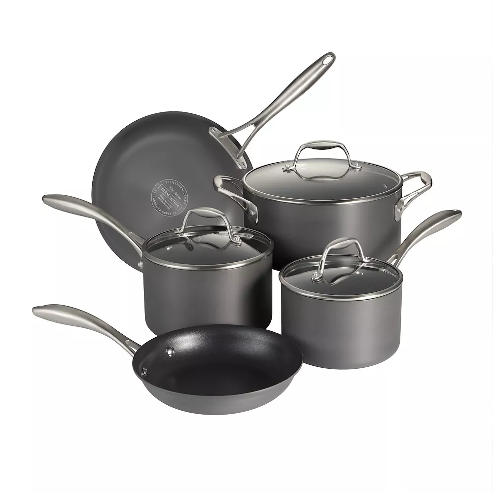 This Tramontina Gourmet 8-pc. hard-anodized aluminum cookware set is perfect for beginning and advanced chefs alike. With every piece you need to braise, saute, simmer and sear, the possibilities are endless with this cookware set.