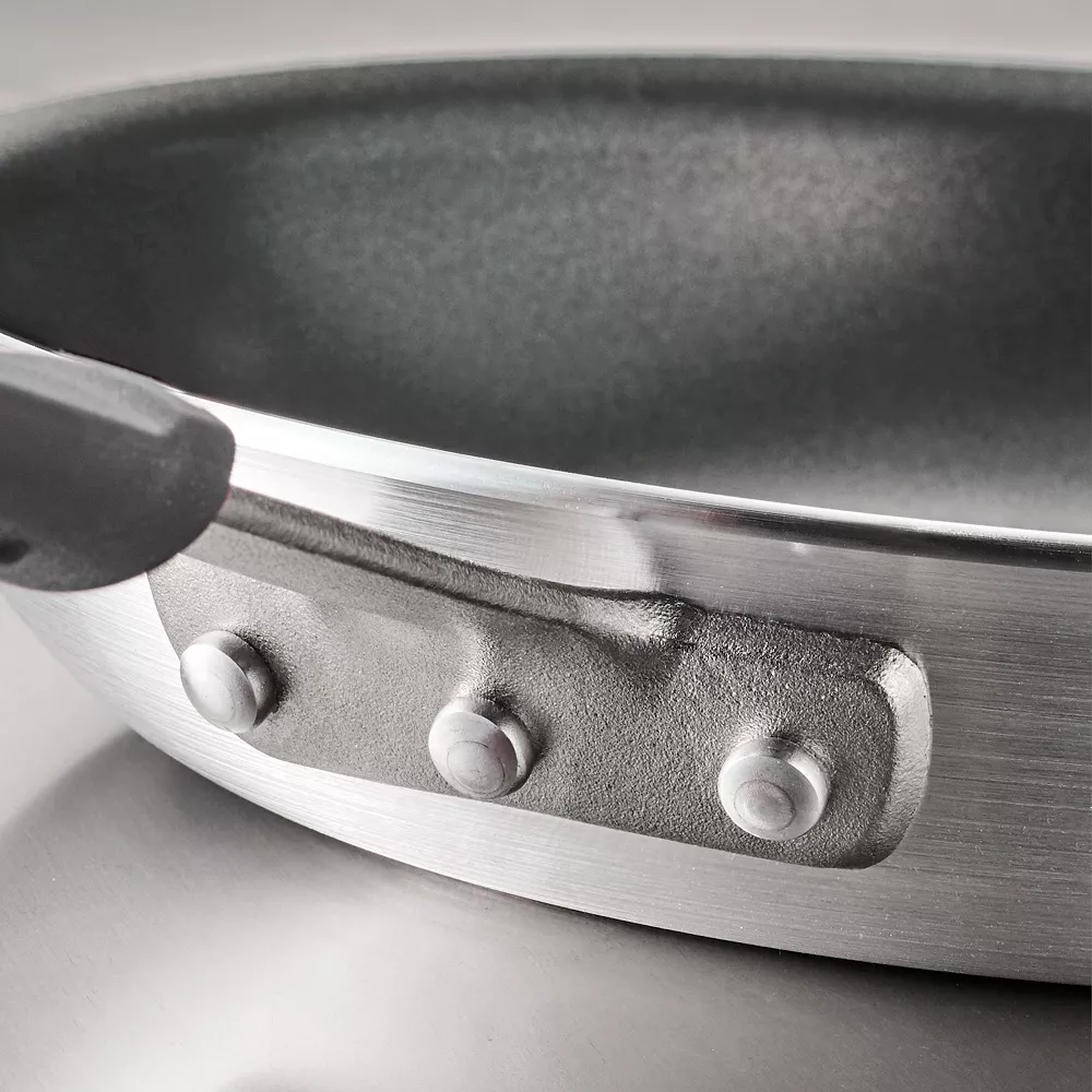 Fry, scramble, brown, sauté and sear small portions like an experienced chef with Tramontina`s PRO Fusion frying pan. Its clever rivetless design provides easy cooking and effortless cleanup, while maintaining all the strength and durability of a traditional riveted handle assembly.