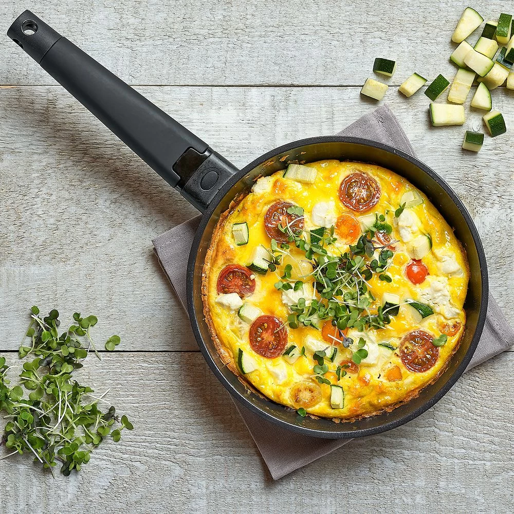 - Removable long handles for easier storage and placement in dishwasher. Silicone grips provide a more secure grip when handling hot cookware.